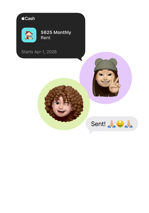 Apple Cash lets you send recurring payments to other people to cover your portion of things like rent, internet, or groceries. You can also set up auto reload to replenish your balance whenever it runs low. So you’ll always have money to send and spend.