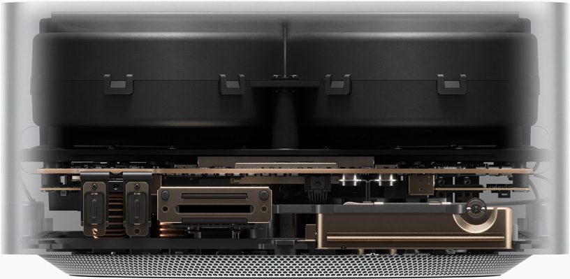 Com um design inacreditavelmente compacto e cheio de portas, o Mac Studio permite reimaginar seu espaço de trabalho e dar asas à sua criatividade.
