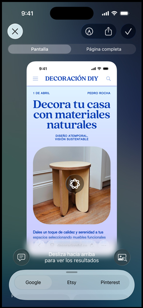 Busca información sobre lo que ves mientras das un paseo o sobre lo que aparece en la pantalla de tu iPhone. Resume lo que estás viendo, haz preguntas y obtén diferentes ideas, como una lista de recetas con lo que tienes en la nevera. Incluso puedes buscar fácilmente entre tus apps favoritas para saber dónde comprar esa prenda que viste en internet y que tanto te gustó.5