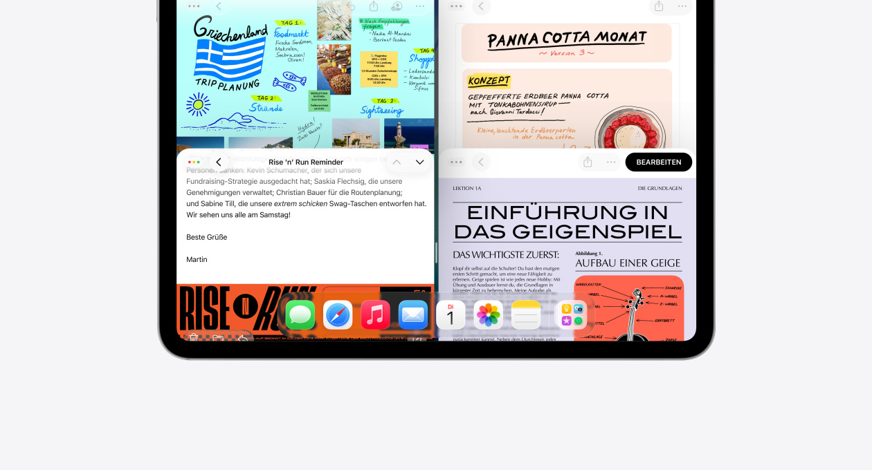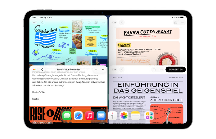 Das neue, intuitive Fenstersystem des iPad gibt dir mehr Möglichkeiten und Flexibilität.