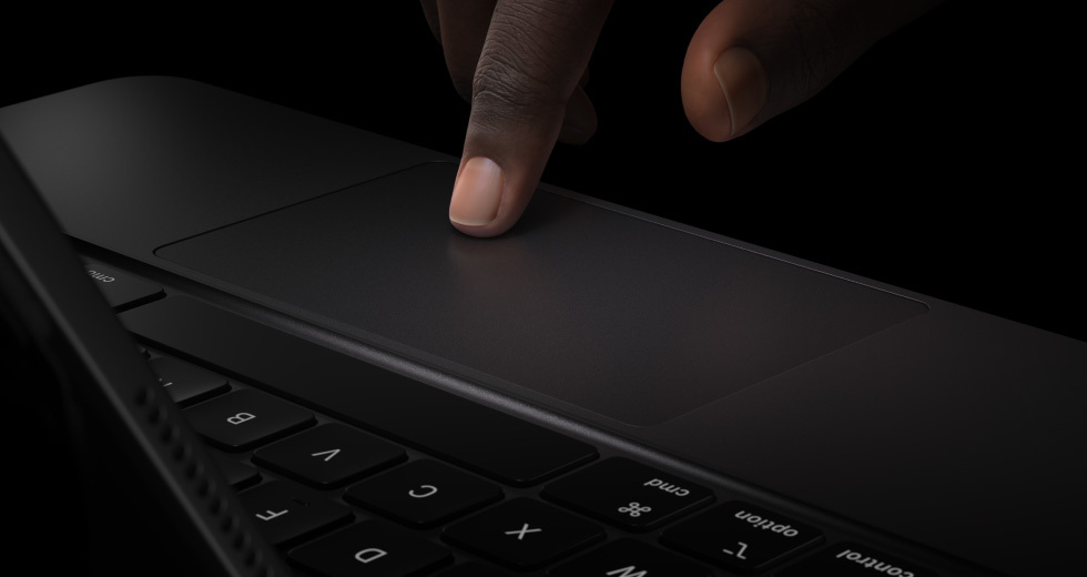 Le Magic Keyboard, avec son design portable et élégant et son repose‑poignet en aluminium12, offre un exceptionnel confort de frappe et d’utilisation du trackpad. Le clavier inclut une rangée de touches de fonction et un grand trackpad en verre avec retour haptique pour un travail précis et les gestes Multi‑Touch.