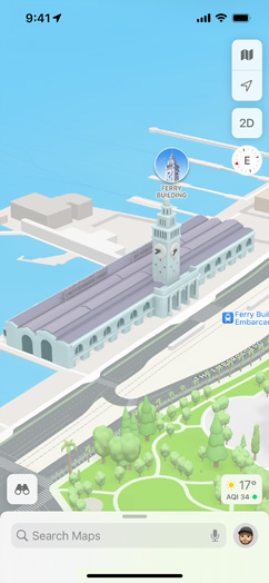 • Update to iOS 15, iPadOS 15, and macOS Monterey to get the latest Maps features, including the interactive globe, 3D experiences for cities like San Francisco, Los Angeles, New York, and London, nearby transit, and more.