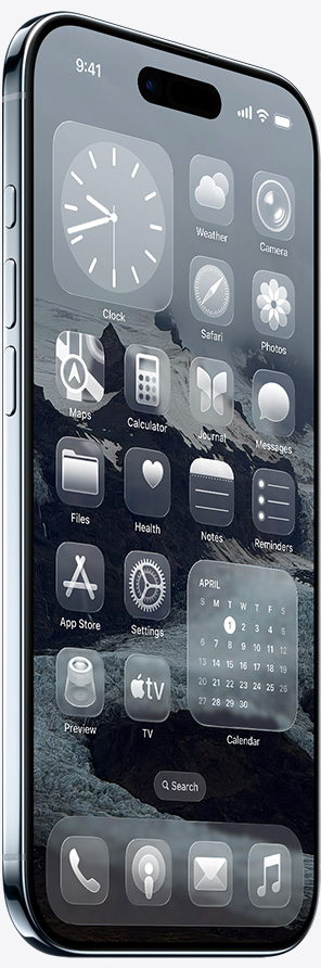 Desain iOS baru memantulkan dan membiaskan apa yang ada di bawahnya secara real time, beradaptasi secara dinamis dengan konten Anda di berbagai aplikasi dan perangkat.