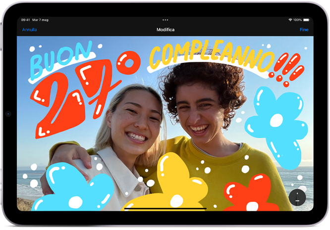 Disegna, prendi appunti, annota un documento. Con Apple Pencil è tutto proprio come dovrebbe essere: intuitivo, facile, quasi magico. Precisa all’ultimo pixel, ha una bassa latenza e cambia il tratto in base all’inclinazione. Mentre la usi puoi appoggiare la mano sullo schermo proprio come faresti su un foglio. Ed è sempre pronta quando arriva l’ispirazione.