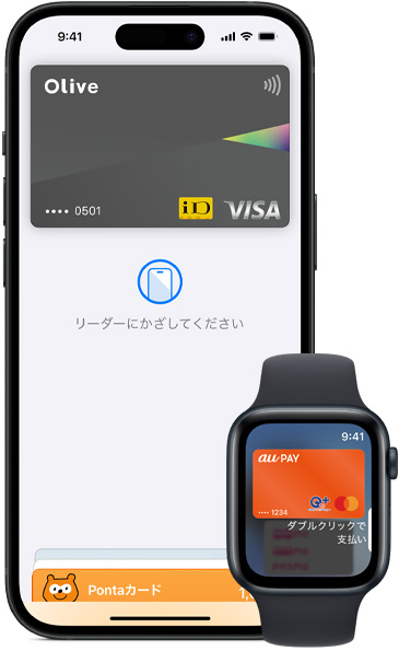Apple Payは、お店、アプリ、ウェブで安全に支払う方法です。ウォレットは、あなたのクレジットカードなどのカードをApple Payで使えるように保存しておく場所