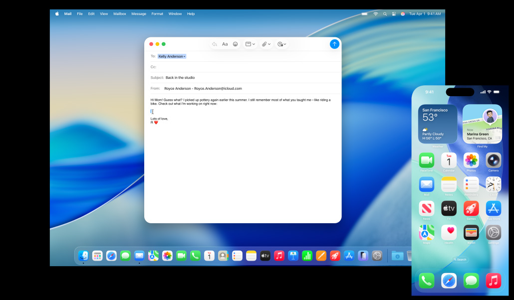Mac, iPhone, iPad, and Apple Watch are amazing on their own. And they’re even more amazing when used together. Thanks to Continuity, your devices work together seamlessly — unlocking a world of powerful features. Start an email on your Mac and finish it on your iPad. Snap a photo on your iPhone and see it appear on your Mac. Or make a call without reaching for your iPhone.1 That’s the magic of Continuity.