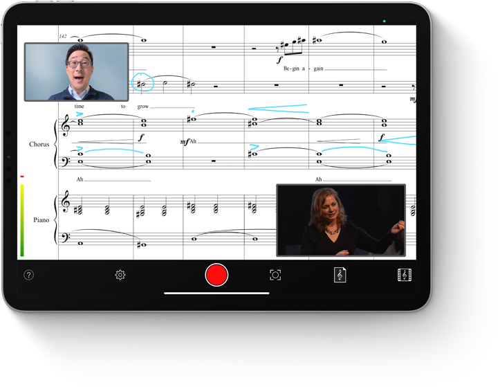 iPad Pro。Kim 博士開發的 iPadOS app 讓使用者可以互相連繫,一同協作。他的 Virtual‑Chorister app 可以從世界各地的音樂人收集個別錄音和演出,以便製作虛擬音樂匯演。