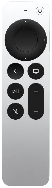 لوحة نقر تعمل باللمس. مررّ بسهولة للانتقال عبر الحلقات أو المشاهد أو الإطارات باستخدام حركة دائرية بسيطة، وشغّل التلفزيون وأطفئه، وبدّل الإدخال إلى Apple TV 4K، وتحكّم في مستوى الصوت.