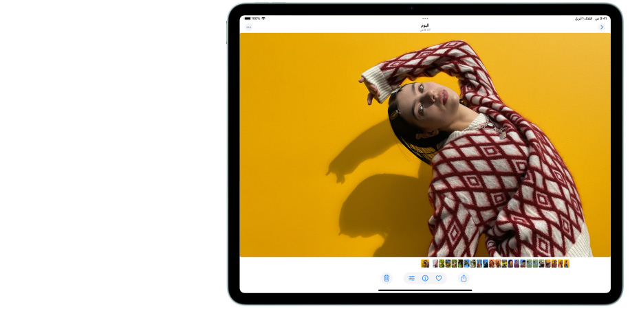 اختر ما يناسبك من بين iPad Air‏ مقاس 11 إنش ومقاس 13 إنش، يتألق كلاهما بشاشة ريتنا ليكويد خلابة فائقة الوضوح تحول كل ما في بالك إلى واقع ملموس أمامك. وتمنحك تجربة مشاهدة مذهلة بروعتها ومدهشة بسرعة استجابتها ورائعة بدقة ألوانها.