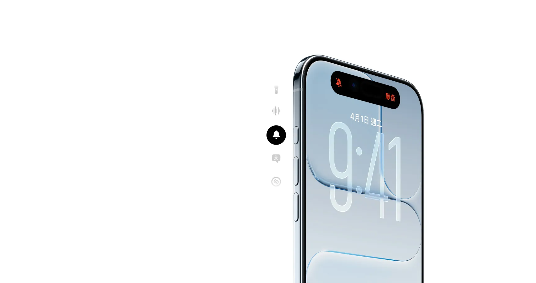 動作按鈕。 帶你一鍵直達可自訂的常用功能。長按即可啟動你想要的操作,如「靜音模式」、「翻譯」、「捷徑」等。