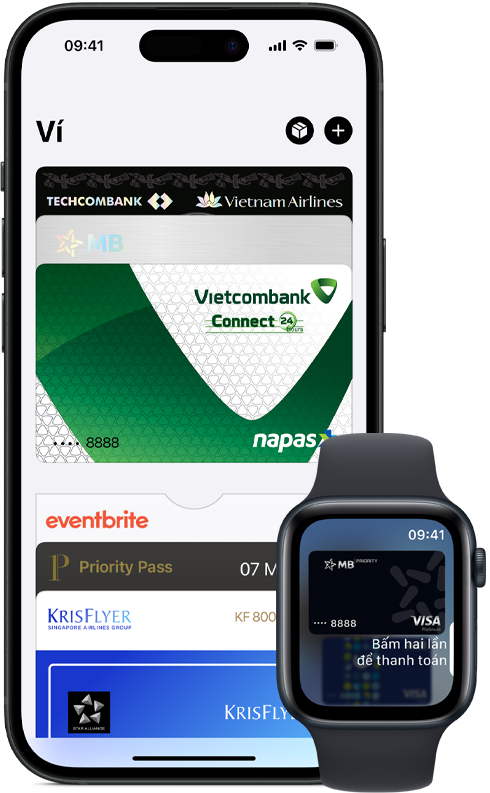 Thiết lập cực kỳ đơn giản. Bạn chỉ cần thêm thẻ tín dụng, thẻ ghi nợ, thẻ trả trước hoặc thẻ nội địa vào ứng dụng Ví trên iPhone. Và hãy nhớ thêm thẻ của bạn vào bất cứ thiết bị Apple nào khác bạn muốn sử dụng Apple Pay. Apple Pay hoạt động trên iPhone, Apple Watch, Mac và iPad.