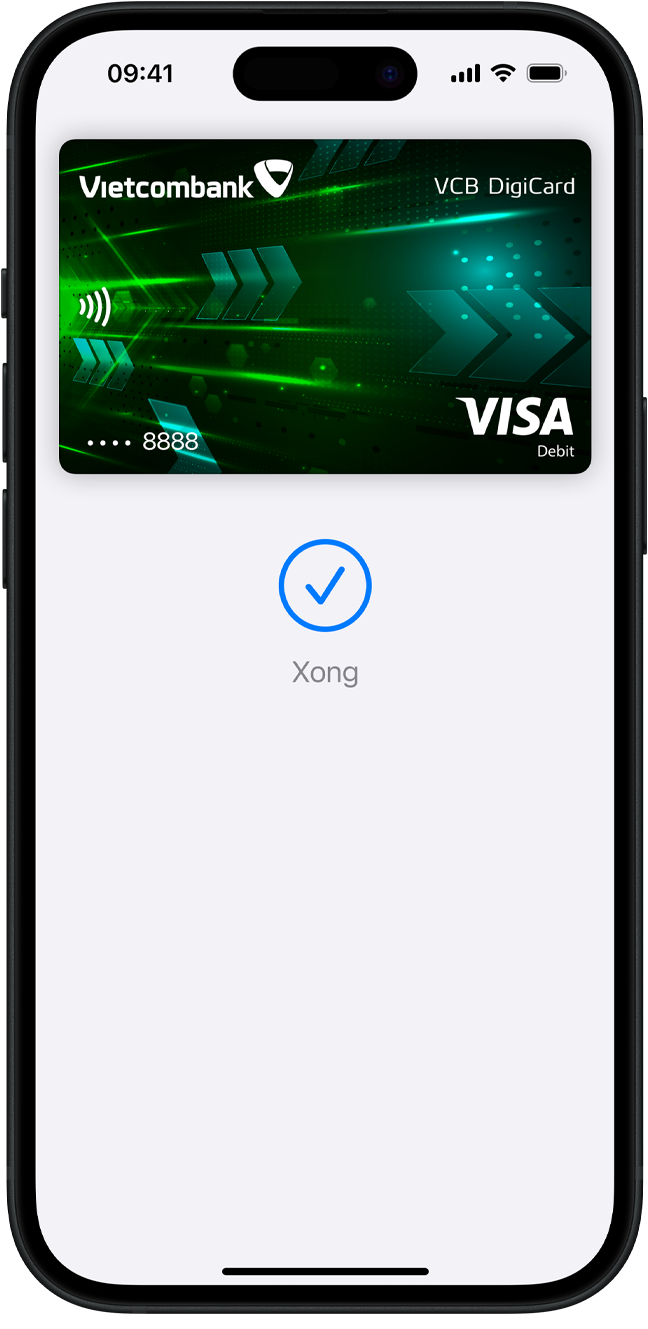 Thiết lập trong nháy mắt. Ngay trên iPhone của bạn. Apple Pay được tích hợp sẵn trong iPhone, Apple Watch, máy Mac và iPad. Bắt đầu bằng cách thêm thẻ tín dụng, thẻ ghi nợ hoặc thẻ nội địa của bạn vào ứng dụng Ví trên iPhone, và bạn sẽ thấy lựa chọn thêm thẻ vào các thiết bị khác của bạn trong một bước dễ dàng. Khi bạn muốn thanh toán, chỉ cần nhấn đúp, chạm, và thế là xong. Bạn vẫn nhận được điểm thưởng và lợi ích từ thẻ của mình, nhờ đó bạn sẽ không bỏ lỡ bất kỳ điểm thưởng hay dặm thưởng quý giá nào.