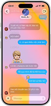 Chọn từ các tùy chọn tích hợp sẵn tuyệt đẹp hoặc chọn bức ảnh bất kỳ của bạn để mang lại cá tính riêng biệt cho các cuộc trò chuyện trong ứng dụng Tin Nhắn.
