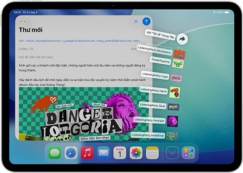 Sắp xếp các cửa sổ bằng cách vuốt nhanh sang trái hoặc phải. Giờ đây, bạn cũng có thể chia màn hình iPad thành ba hoặc bốn phần.